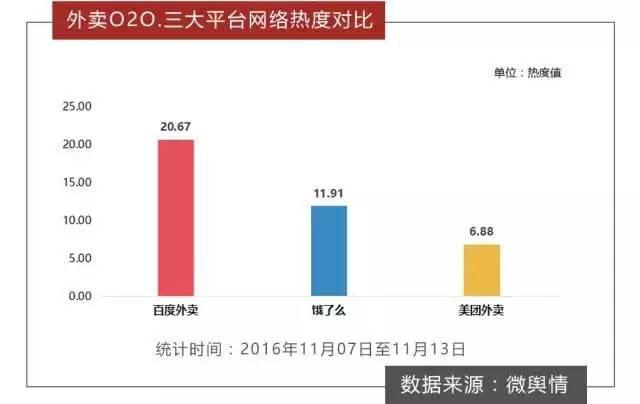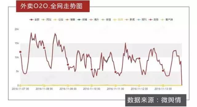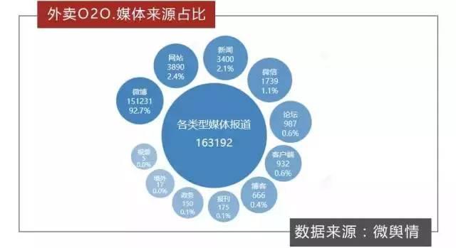 而據統計,在11月7日至13日期間,關于外賣O2O的全網信息總量高達163余萬條,微博成為該話題的主要輿論平臺,信息量占比達92.7%。