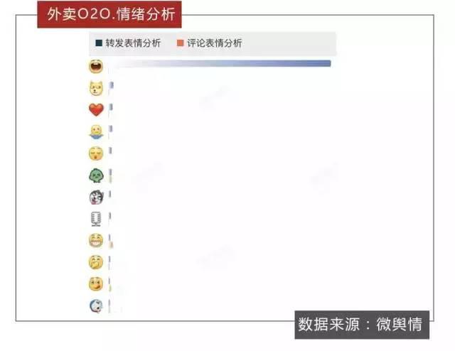 “開心”、“Doge”、“愛心”是微博網友提及外賣O2O時最常使用的三大表情,而在最常用的前十二個表情中,并沒有直接表達負面情緒的表情,可見在“民以食為天”的我國,網友對外賣O2O多半抱有支持和認可的態度。