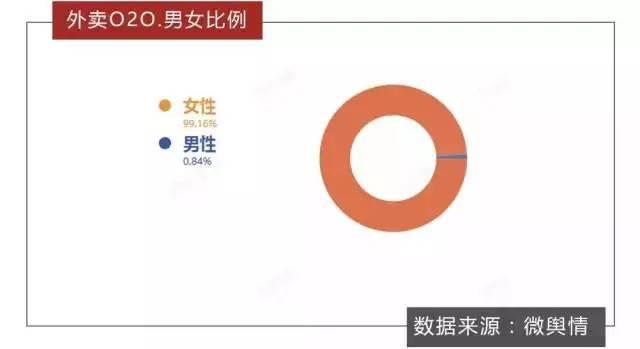 從用戶群的性別比例來看,女性網友更關注外賣O2O,并且占比高達99.16%。