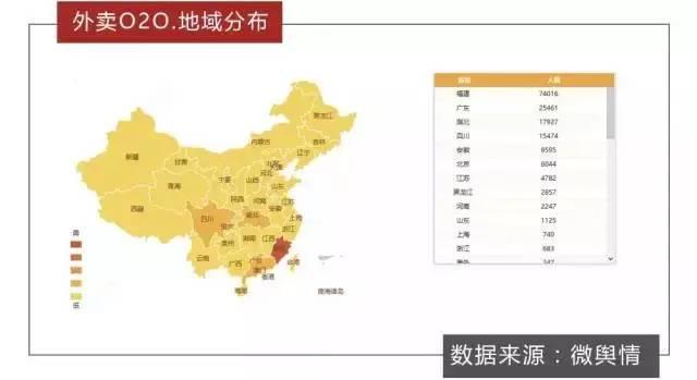 從用戶群的地域分布來看,福建、廣東、湖北成為了關注外賣O2O網友人數最多的前三個地域。