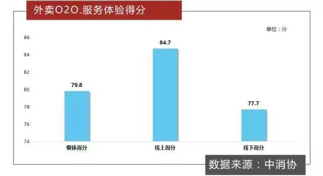 根據中國消費者協會對外賣O2O服務體驗的調查結果顯示:外賣O2O服務整體得分為79.8分,其中線上體驗得分為84.7分,線下體驗得分為77.7分。這說明相對于線上訂餐的體驗情況,線下送餐服務及送餐質量體驗部分存在的問題相對突出。